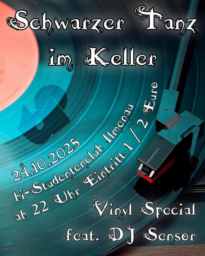 Nach längerer Pause kehrt der Schwarze Tanz im Keller mit einer besonderen Veranstaltung zurück. DJ Sensor beehrt uns, und wird mit seiner Schallplattensammlung einen ganz besonderen dunklen Klang in unsere Hallen bringen. Ein Hör- und Tanzvergnügen der ganz besondern Güte.